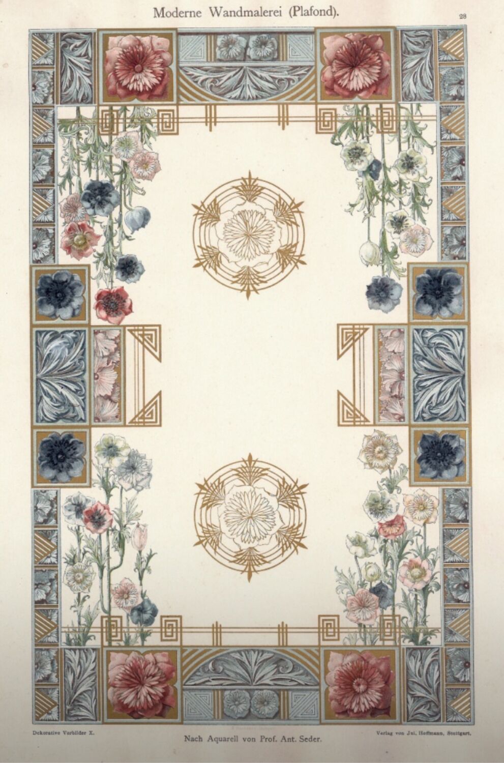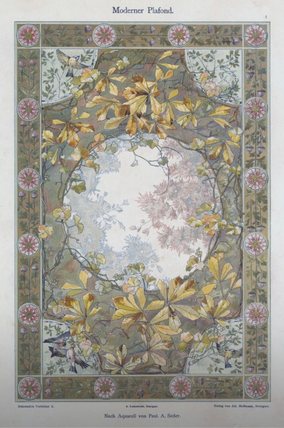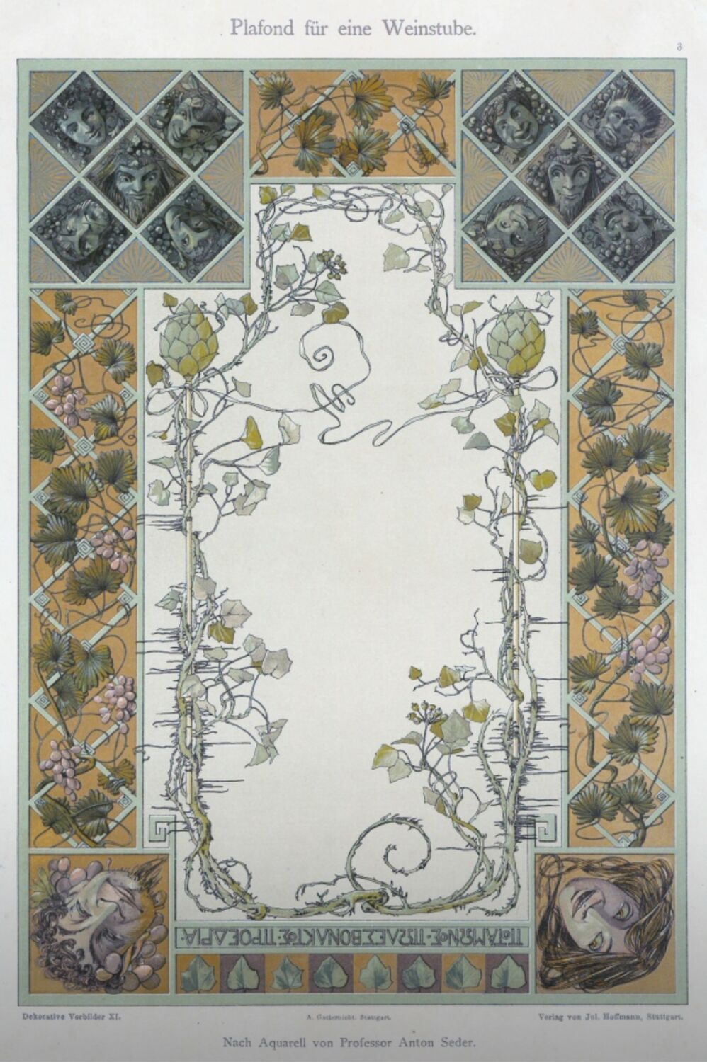 Антон Седер - известный немецкий художник и декоратор, основатель, директор и профессор College of Decorative Arts в Страсбурге. Его называют иконой стиля модерн, а его работы считаются непревзойденным образцом и эталоном хромолитографии.