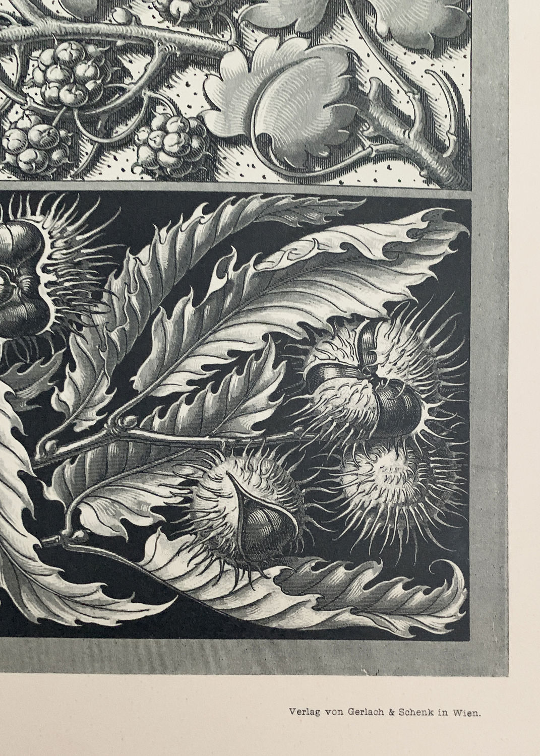 Редкая антикварная хромолитография из альбома The Plant in Art and Trade (Die Pflanze in Kunst und Gewerbe), опубликованного в 1890 году издательством Gerlach & Schenk в Вене.
